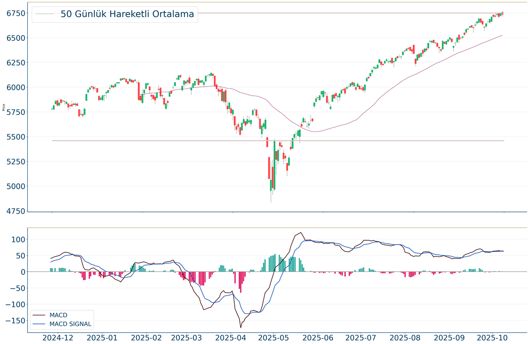 Geçtiğimiz günü %0.28 düşüşle tamamladı. S&P 500 Endeksi 20 günlük hareketli ortalamasının üzerinde kapanış gerçekleştirdi.20-50-200 günlük hareketli ortalamalar 6.668, 6.525, 6.046 olarak sıralanabilir. Gün içinde pozitif performans gerçekleşmesi halinde 6.883-6.922 direnç, negatif performans gerçekleşmesi halinde ise 6.685-6.577 destek seviyeleri olarak izlenebilir.