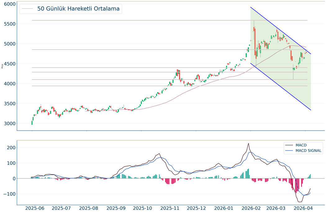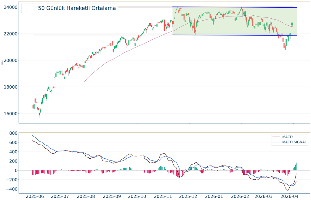 Gün içi görülen en yüksek seviye 22.836 iken kapanış 22.822 seviyesinde %0.83 yükseliş ile gerçekleşti. Ortalama işlem hacimlerine bakıldığında ise 5 iş günü için gözlenirken 5 günlük hareketli ortalamanın üzerinde hareket etmesi kısa vadedeki olumlu görünüme işaret ediyor. Ayrıca, gün itibarıyla 22.543 seviyesi yeni destek görevi görürken kısa vadeli direnç 23.261 seviyesi oldu. Endeksin aşağı yönlü hareketini devam ettirmesi halinde 22.167 seviyesi ikinci destek görevi görürken yukarı yönlü hareketlerde ise 23.475 seviyesini ikinci direnç olarak izleyeceğiz.