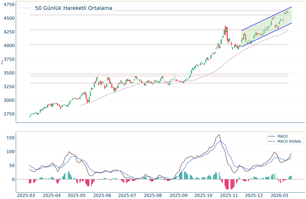 Geçtiğimiz günü %0.54 düşüşle tamamladı. Ons Altın için aylık görünüm pozitiftir.50 ve 200 günlük hareketli ortalamalar 4.268 ve 3.678 olarak sıralanabilir. 4.722 seviyesinin geçilmesi halinde yükseliş eğilimli hareketler izlenebilirken yeni direnç olarak 4.705 karşımıza çıkacaktır. 4.588 ise önemli destek konumundadır. Bu desteğin altına gelinmesi halinde 4.570 yeni destek olarak takip edilebilir.