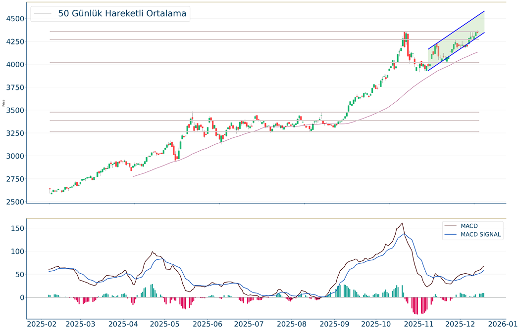 Ons Altın geçtiğimiz günü 4.344 seviyesinde %0.08 düşüşle tamamladı. Önemli momentum indikatörlerinden biri olan RSI değerine bakıldığında ise aşırı alım veya satım bölgesinde olmadığı görülebilir. Öte yandan, ilk direnç olarak 4.442 seviyesi karşımıza çıkarken bu seviyenin üzerinde 4.467 direncine yönelim gerçekleşebilir. Aşağı yönlü işlemlerde ise 4.314 ve 4.243 destekleri takip edilmelidir.