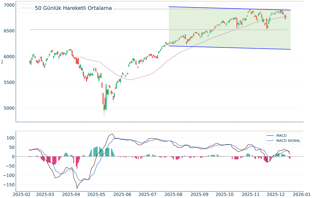 Kasım ayı TÜFE verisinin yıllık bazda %2,7 seviyesinde gerçekleşerek %3,1 düzeyindeki beklentilerin bir hayli altında kalmasının ardından Nasdaq ve S&P 500 endeksleri sırasıyla %1,4 ve %0,8 değer kazandı. Sektörel bazda da Tesla (TSLA) ve Amazon (AMZN) hisselerindeki artışa paralel %1,5 değer kazanan S&P 500 İsteğe Bağlı Tüketim Sektörü Endeksi günün en fazla yükseleni olurken 55,9 ABD Doları seviyesine gerileyen WTI ham petrol fiyatlarından olumsuz yönde etkilenen S&P 500 Enerji Sektörü Endeksi günü %1,2’lik düşüşle tamamladı. Dünkü yükselişin ardından bugüne hem Avrupa hem de ABD piyasalarının yatay başlaması bekleniyor. Makroekonomik tarafta bugün gözler TSİ 16:30’da açıklanacak olan kişisel tüketim harcamaları enflasyonu (PCE) verisinde olacak. Bilanço tarafında ise Paychex (PAYX) ve Carnival’ın (CCL) açıklayacağı finansallar takip edilecek. Teknik tarafta da S&P 500 için direnç 6.929 olurken destek olarak 6.727 izlenebilir.