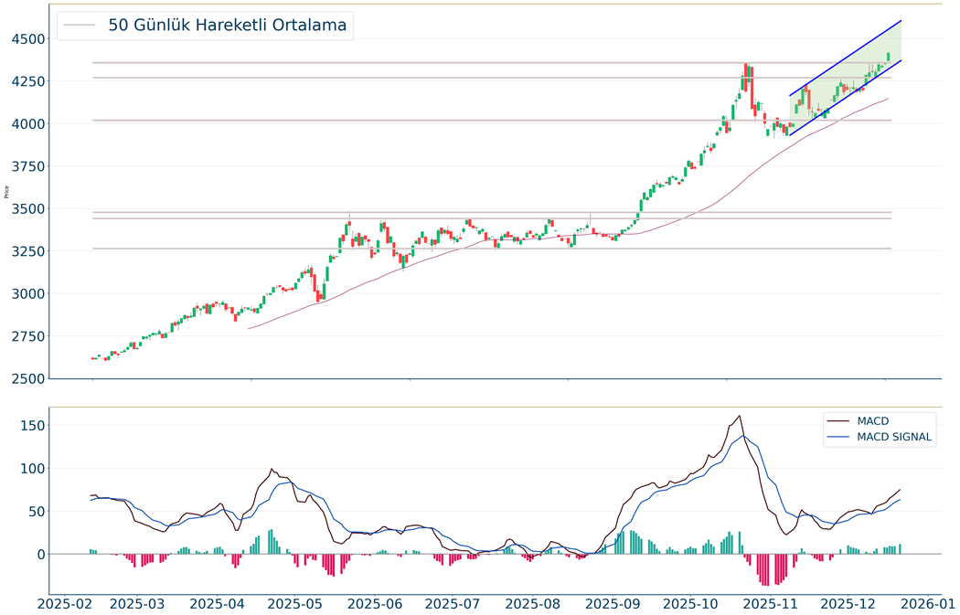 ABD hisse senedi endeksleri haftanın son işlem gününü enflasyon verilerinin yarattığı iyimserlik ve yapay zeka temalı şirketlere karşı iyileşen güvenin etkisiyle pozitif tamamladı. TikTok’un ABD segmentindeki işine dair Oracle ile yapmış olduğu anlaşma ve güçlü Micron finansalları sektöre dair güveni artırdı. S&P 500 %0,88, Nasdaq %1,31, Dow Jones %0,38 değer kazanımlarıyla işlem gördü. S&P 500 Endeksi’nde sektörlerin büyük çoğunluğu pozitif fiyatlanırken, teknoloji %2,03, endüstriyeller %0,88, sağlık %0,70 oranında primlenmelerle en iyi performansları gösterdiler. Negatif tarafta ise altyapı %1,34, zaruri tüketim %0,49, gayrimenkul ve isteğe bağlı tüketim sektörleri %0,35 kayıplarla yer aldı. Tahvil piyasası hafif satıcılı işlem gördü ve kıymetli metallerde rekor tazeleme eğilimi sürdü. Michigan Üniversitesi anketinde kısa vadeli enflasyon beklentisi %4,5 seviyesinden %4,2’ye geri çekilse de piyasa beklentisi %4,1 seviyesinde bulunmaktaydı. Tüketici sentimenti verileri iyileşme göstermesine rağmen beklentilerin altında kaldı. Noel tatili nedeniyle hafta boyunca küresel piyasalarda kısa bir haftayı takip ediyor olacağız. Cuma günü açıklanmayan Ekim ayı PCE verilerinin bugün açıklanması beklenirken, Salı günü 3Ç büyüme ve dayanıklı mal sipariş verileri izleniyor olacak. Hafta boyunca ise ABD hazine tahvil ihaleleri takip edilecek. Güne başlarken Asya endeksleri yatay pozitif fiyatlanıyor. Avrupa endekslerinde ise yatay negatif bir açılış beklenmekte.
