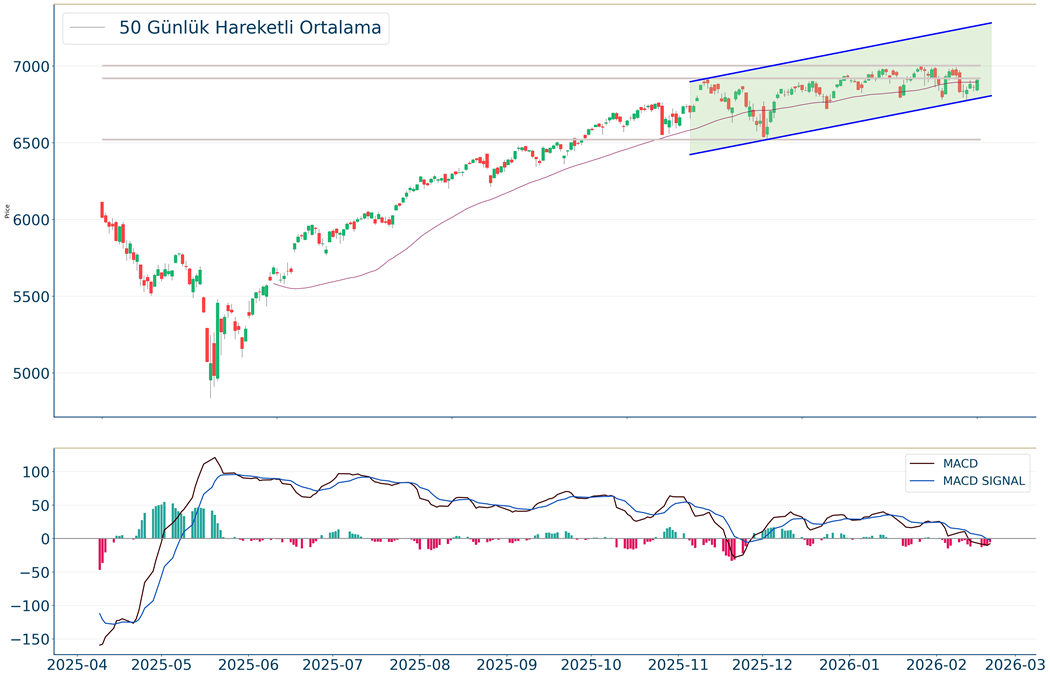 Gün içi görülen en yüksek seviye 6.915 iken kapanış 6.909 seviyesinde %0.69 yükseliş ile gerçekleşti. Ortalama işlem hacimlerine bakıldığında ise 5 iş günü için gözlenirken 5 günlük hareketli ortalamanın üzerinde hareket etmesi kısa vadedeki olumlu görünüme işaret ediyor. Ayrıca, gün itibarıyla 6.832 seviyesi yeni destek görevi görürken kısa vadeli direnç 7.045 seviyesi oldu. Endeksin aşağı yönlü hareketini devam ettirmesi halinde 6.720 seviyesi ikinci destek görevi görürken yukarı yönlü hareketlerde ise 7.103 seviyesini ikinci direnç olarak izleyeceğiz.