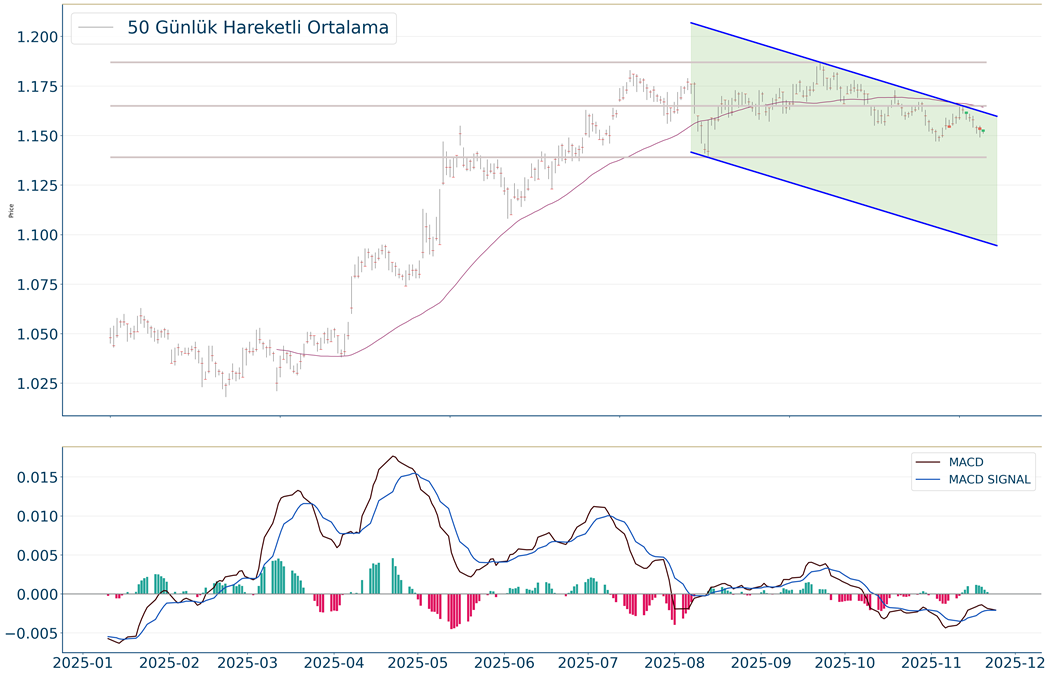 EUR/USD dün gerçekleşen işlemlerde en yüksek 1,153, en düşük ise 1,151 seviyesinde işlem gördükten sonra %0.06 azalarak azalarak 1,153 seviyesinde günü tamamladı. 20 günlük hareketli ortalamanın altında hareket etmesi ise EUR/USD adına olumsuz olarak nitelendirilebilir. Gün içi işlemlerde 1,144 ve 1,128 desteklerini ve 1,176 ve 1,181 dirençlerini takip edeceğiz.