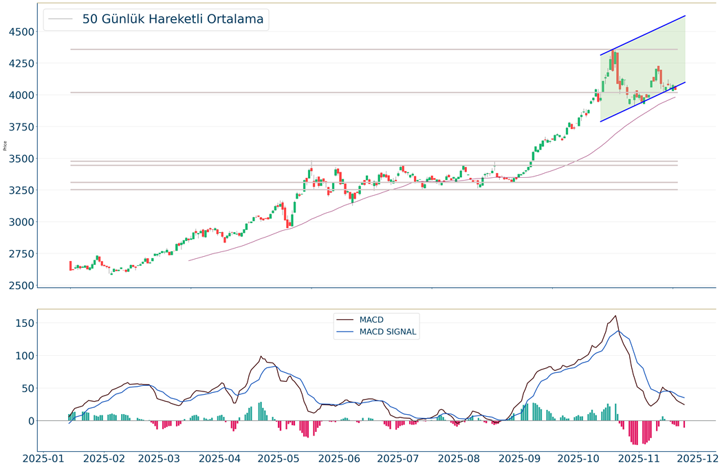 Ons Altın, günlük periyotta %0.88 düştü. Haftalık bakıldığında %0.67 aşağıda ve aylık bakıldığında ise %0.97 yukarıda seyrederken güncel olarak 4.040 seviyesinden işlem görmekte. Teknik göstergelere bakıldığında MACD çizgileri sat konumunda, sıfır çizgisinin üzerinde hareket ediyor. Ayrıca RSI değerine göre aşırı alım veya satım bölgesinde olmadığı gözleniyor. İşlem yaparken 4.138 ve 4.162 dirençleri ve 4.015 ve 3.945 destekleri izlenebilir.