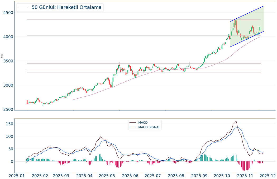 Gün içi görülen en yüksek seviye 4.201 iken kapanış 4.200 seviyesinde %2.66 yükseliş ile gerçekleşti. Ortalama işlem hacimlerine bakıldığında ise 5 iş günü için gözlenirken 5 günlük hareketli ortalamanın üzerinde hareket etmesi kısa vadedeki olumlu görünüme işaret ediyor. Ayrıca, gün itibarıyla 4.156 seviyesi yeni destek görevi görürken kısa vadeli direnç 4.282 seviyesi oldu. Endeksin aşağı yönlü hareketini devam ettirmesi halinde 4.091 seviyesi ikinci destek görevi görürken yukarı yönlü hareketlerde ise 4.314 seviyesini ikinci direnç olarak izleyeceğiz.