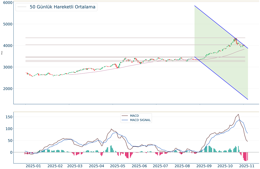 Ons Altın, geçtiğimiz günü %0.68 yükseliş ile kapattıktan sonra, 20 günlük hareketli ortalaması olan 4.074 seviyesinin altında fiyatlanıyor. Bu durum Ons Altın için aylık periyotta negatif bir görüntü çiziyor. Son günde yapılan işlemlerde ise en yüksek 4.016 seviyesinde işlem gördükten sonra günü 4.009 seviyesinde tamamladı. Öte yandan, trend göstergelerinden biri olan MACD sat pozisyonunda, pozitif bölgede hareket ediyor. 4.090-4.122 dirençler, 3.966-3.901 destekler olarak değerlendirilebilir.