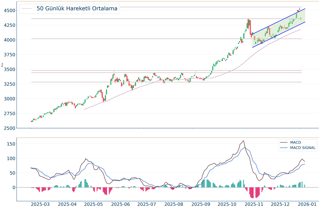Ons Altın geçtiğimiz günü 4.372 seviyesinde %3.46 düşüşle tamamladı. Önemli momentum indikatörlerinden biri olan RSI değerine bakıldığında ise aşırı alım veya satım bölgesinde olmadığı görülebilir. Öte yandan, ilk direnç olarak 4.459 seviyesi karşımıza çıkarken bu seviyenin üzerinde 4.490 direncine yönelim gerçekleşebilir. Aşağı yönlü işlemlerde ise 4.329 ve 4.261 destekleri takip edilmelidir.