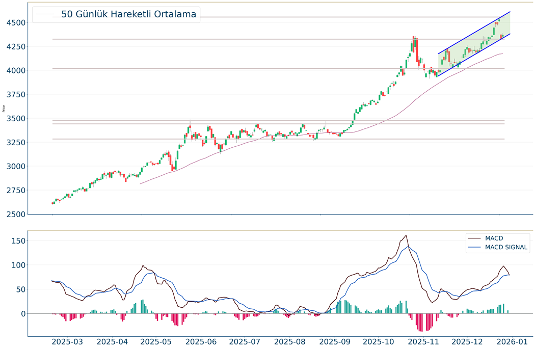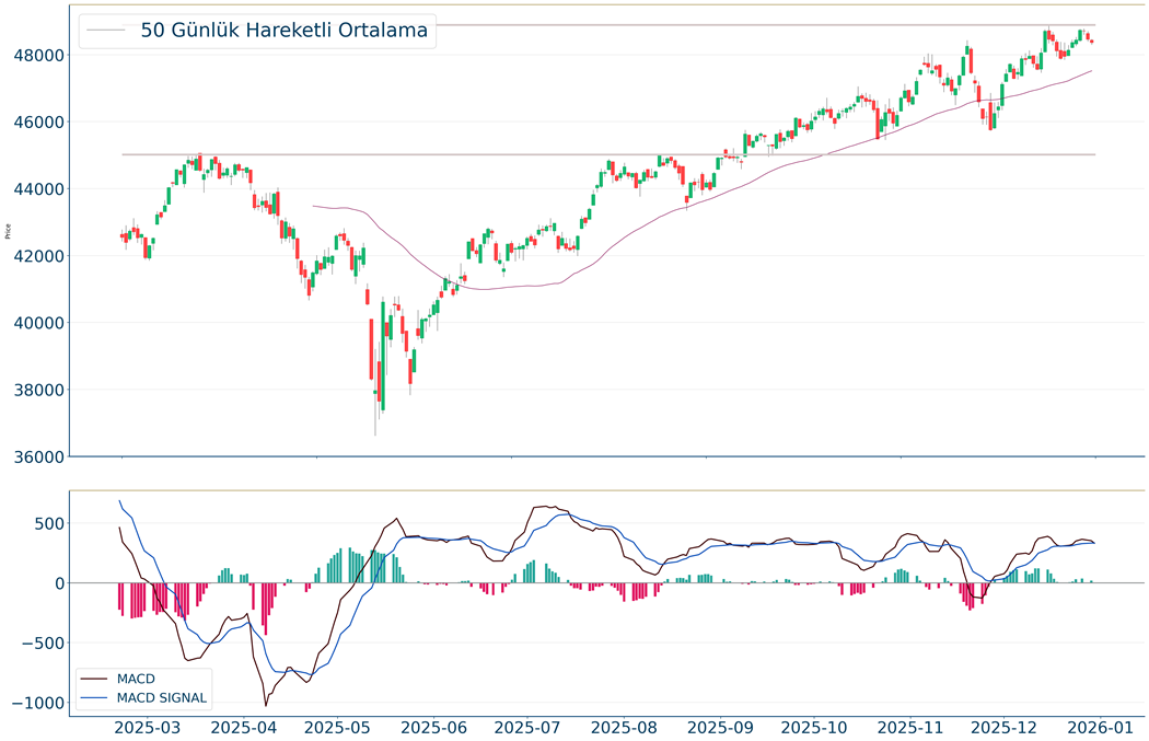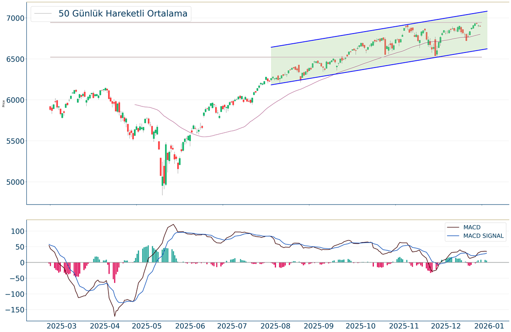 Fed tutanaklarının ardından dünkü işlemlerde seans sonu gelen satışların etkisiyle majör ABD endeksleri günü %0,1-%0,2 arası düşüşle noktaladı. Sektörel bazda %1,0 yükselen S&P 500 Enerji Sektörü Endeksi günün en fazla değer kazananı olurken Tesla (TSLA) hisselerindeki düşüşün etkisiyle %1,2 gerileyen S&P 500 İsteğe Bağlı Tüketim Sektörü Endeksi ise günün en fazla kaybettireni oldu. 2025’in son işlem gününe Avrupa borsalarının pozitif ABD borsalarının ise negatif bir başlangıç yapması bekleniyor. Günün makroekonomik takviminde TSİ 16:30’da açıklanacak olan haftalık işsizlik başvuruları takibimizde olacak. Teknik tarafta S&P 500 için 7.044 ve 7.074 dirençleri ve 6.851 ve 6.750 destekleri izlenebilir.