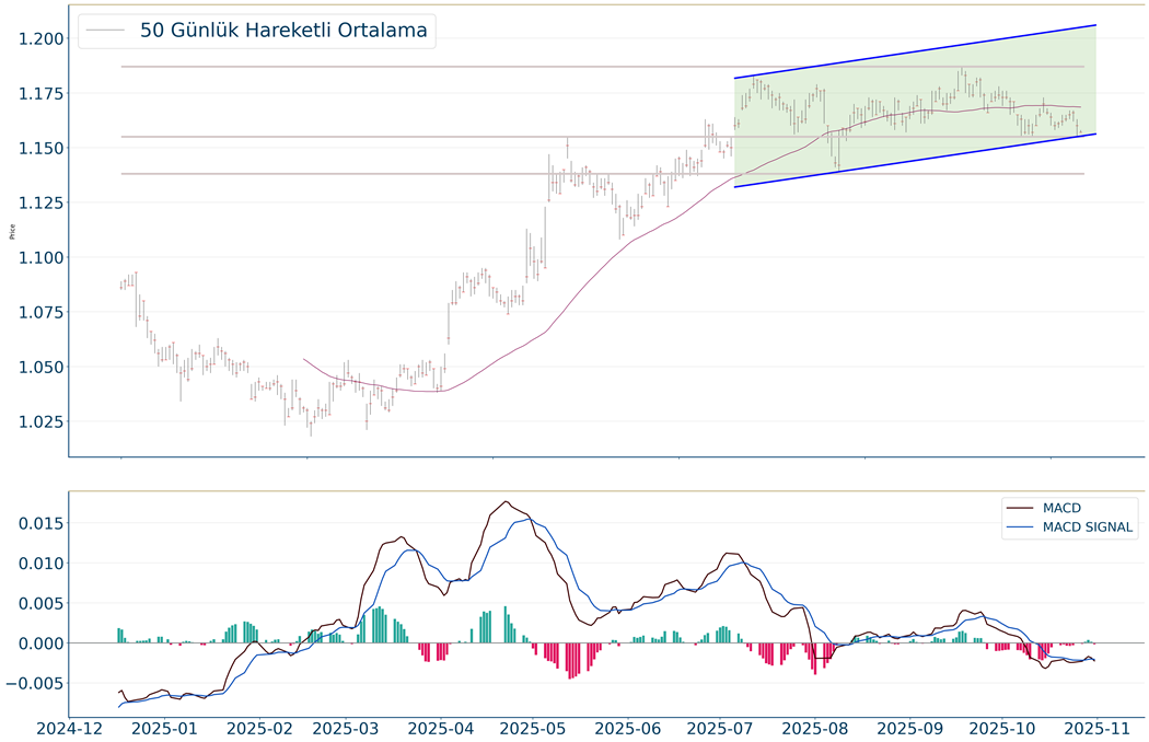 EUR/USD, günlük periyotta %0.28 düştü. Haftalık bakıldığında %0.402 aşağıda ve aylık bakıldığında ise %1.311 aşağıda seyrederken güncel olarak 1,157 seviyesinden işlem görmekte. Teknik göstergelere bakıldığında MACD sat pozisyonunda, negatif bölgede hareket ediyor. Ayrıca RSI değerine göre aşırı alım veya satım bölgesinde olmadığı gözleniyor. İşlem yaparken 1,181 ve 1,186 dirençleri ve 1,149 ve 1,134 destekleri izlenebilir.