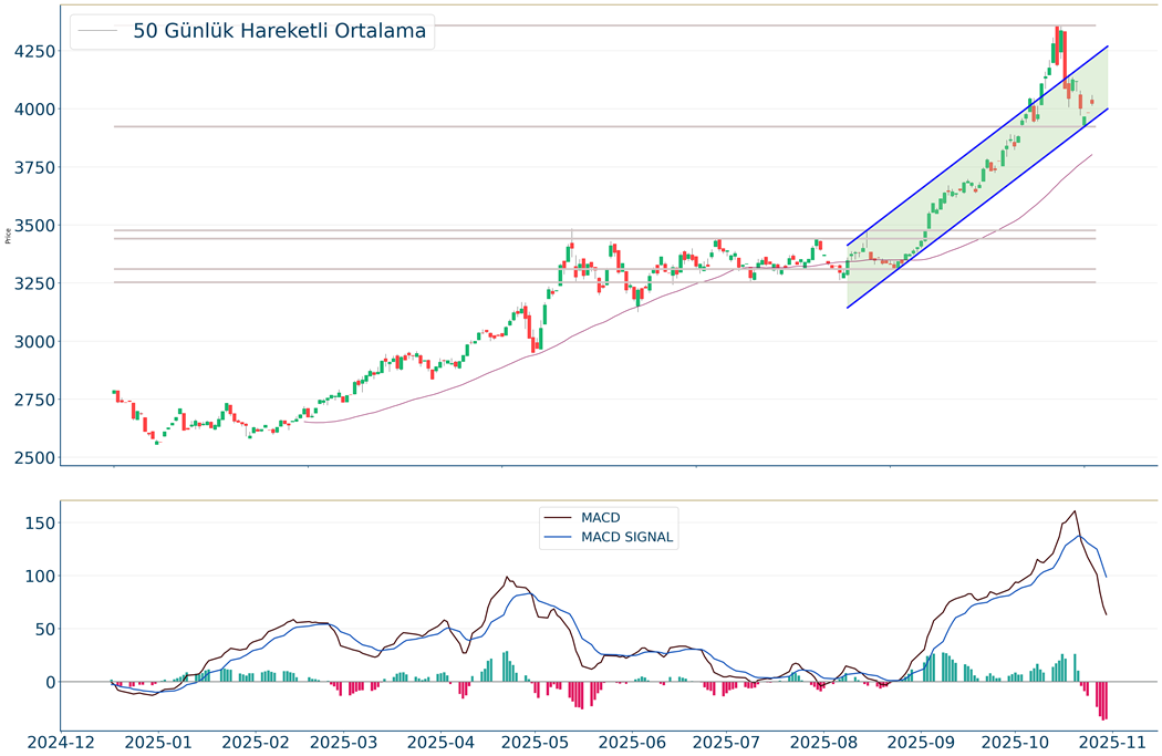 Geçtiğimiz günü %0.99 yükselişle tamamladı. Ons Altın için aylık görünüm negatiftir.50 ve 200 günlük hareketli ortalamalar 3.803 ve 3.328 seviyelerinde hareket ediyor. Yukarı yönlü hareketlerde izlenebilecek birinci direnç 4.120 olurken destek olarak 3.995 izlenebilir.