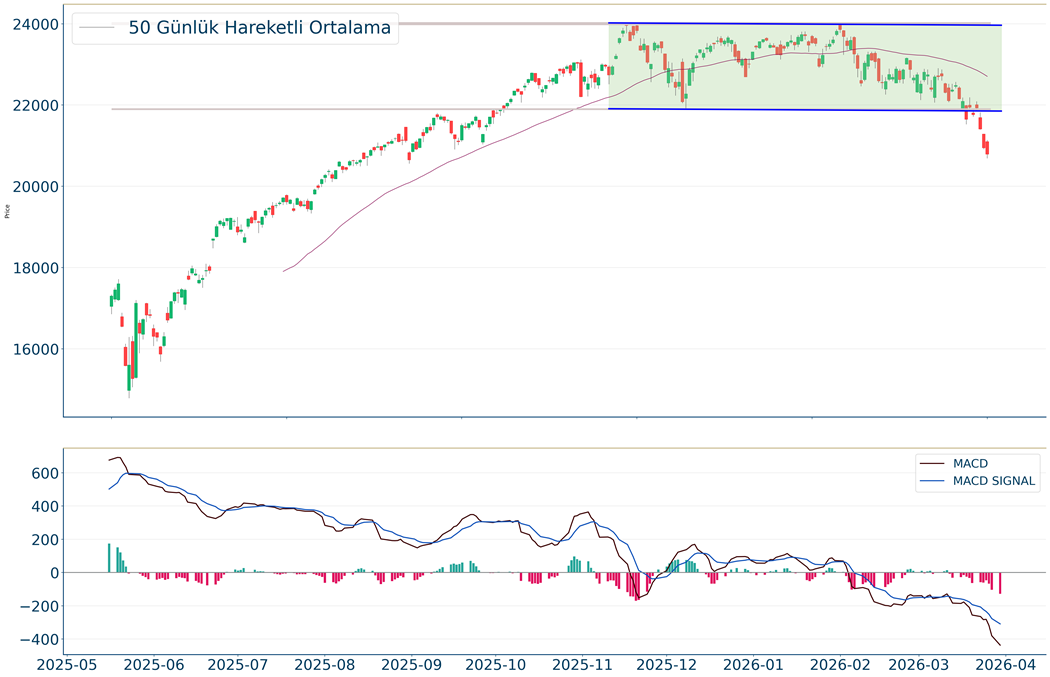 Geçtiğimiz günü %0.73 düşüşle tamamladı. Nasdaq Endeksi 20 günlük hareketli ortalamasının altında kapanış gerçekleştirerek aylık negatif görünümünü sürdürdü. Gün kapanışına göre 20.830 desteği kırıldı. Yeni destekler 20.648-20.192 haline geldi. 21.363-21.560 noktaları ise dirençler olarak takip edilebilir.