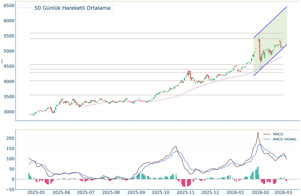 Ons Altın geçtiğimiz gün %0.22 artarak 5.131 seviyelerinden işlem görüyorken 50 günlük hareketli ortalaması olan 4.828 seviyesinin de %6 üzerinde seyrediyor. Bu seviyeye göre Ons Altın için orta vadeli negatif görünüm hakimdir. Destek ve direnç seviyeleri; Yükseliş halinde ilk direnç olarak 5.238 seviyesi takip edilirken bu direncin de geçilmesi halinde 5.286 takip edilebilir. Negatif hareketlerde ise destekler 5.074 ve 4.984 olarak izlenebilir.