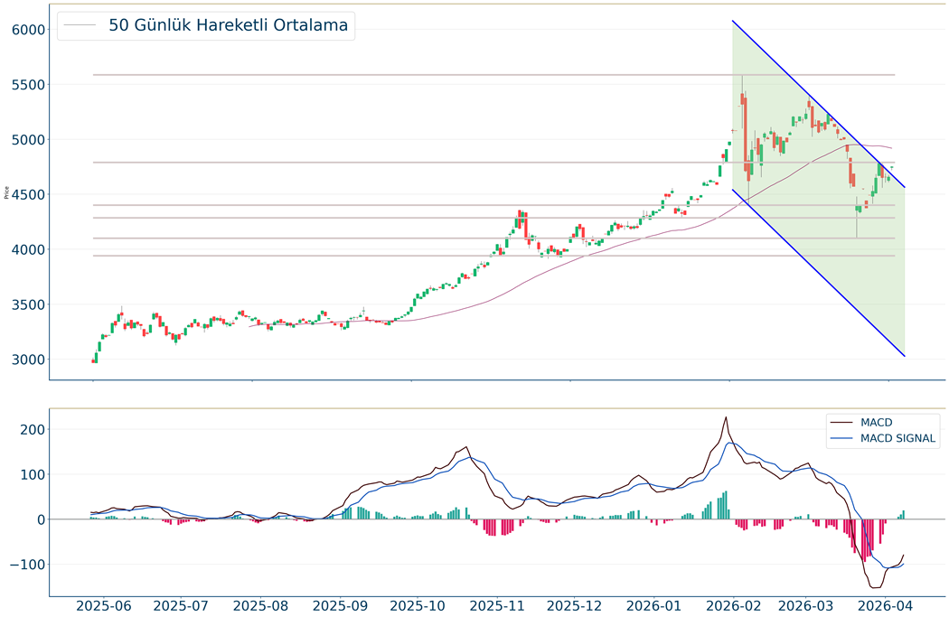 Ons Altın, günlük periyotta %1.98 arttı. Haftalık bakıldığında %2.19 yukarıda ve aylık bakıldığında ise %9.19 aşağıda seyrederken güncel olarak 4.749 seviyesinden işlem görmekte. Teknik göstergelere bakıldığında MACD çizgisi sinyal çizgisinin üzerinde, negatif bölgede yer alıyor. Ayrıca RSI değerine göre aşırı alım veya satım bölgesinde olmadığı gözleniyor. İşlem yaparken 4.846 ve 4.878 dirençleri ve 4.705 ve 4.631 destekleri izlenebilir.