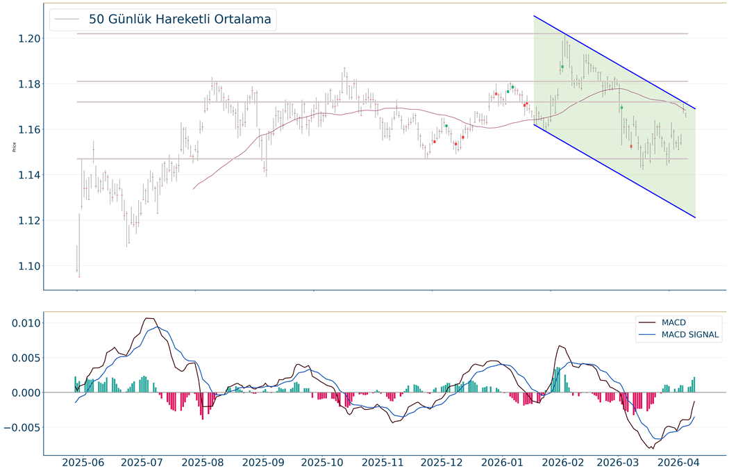 EUR/USD geçtiğimiz gün %0.15 azalarak 1,167 seviyelerinden işlem görüyorken 50 günlük hareketli ortalaması olan 1,168 seviyesinin de %0 altında seyrediyor. Bu seviyeye göre EUR/USD için orta vadeli pozitif görünüm hakimdir. Destek ve direnç seviyeleri; Gün içinde pozitif performans gerçekleşmesi halinde 1,191-1,195 direnç, negatif performans gerçekleşmesi halinde ise 1,158-1,142 destek seviyeleri olarak izlenebilir.