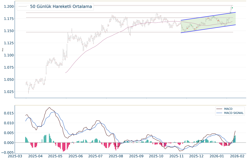 BIST 100 Endeksi ise yıla olumlu başlangıç yapmasının ardından yükselen trendde direnç seviyelerini aşarken, rekor tazeleme eğilimi gösteriyor. Endeks 13.500 direncini de aşması sonrasında 13.900 direncinin üzerine yükseliş sergiledi. Buna göre endeks günü %3,2, bankacılık endeksi ise %4,8 yükselişle tamamladı. Sırasıyla yılın başından beri endeksin getirisi %22,8 olurken, bankacılık endeksinin %17,7 değer kazandığını söyleyebiliriz. Böylece endeks uzun vadeli grafikte mevcut kanal hareketinin üst bandını aşması sonrasında yükselişine devam ediyor. Geçtiğimiz yılın Ağustos ayından itibaren oluşan orta vadeli alçalan kanalın Aralık ayında yukarı tamamlanması ile birlikte yükseliş hareketi başlarken, endeks orta vadeli görünümünü güçlendirmişti. Yeni yılda endekste bu orta vadeli alçalan kanalın üzerinde yükselen trend devam ederken, formasyon oluşum olarak gereğini yerine getirdi. Endeks bu formasyonun ilk hedefi olan 13.000’in üzerine yönelim gösterdi. Böylece endeks orta vadeli bu formasyon hareketinin mesafesi kadar yükselişini gerçekleştirmiş oldu. Endeks uzun vadeli olarak teknik analize göre; 14.000’in üzerinde 15.000 seviyesine yönelim gösterebilir. Endeks 2024’ten başlamak üzere Ağustos 2025’e kadar yani uzun vadeli üçgen formasyon şeklinde bir oluşum sergiledi. Ağustos 2025’te bu formasyonun yukarı tamamlanması sonrasında orta vadeli formasyon oluşumların üzeri ile de yükseliş hareketini ileri taşımaktadır. Uzun vadeli formasyon hedefi ise yine oluşumu başlangıç noktasından mesafesi kadar alanı hesaba kattığımızda; 14.000 ve 15.000 seviyelerine yükselişi bize teknik olarak göstermektedir. Kısa vadede endekste 13.900’ün üzerinde 14.000 ve 14.100 dirençlerine doğru yükselişin devamını görebiliriz. 13.700 destek haline gelirken, bu seviyenin üzerinde kısa vadeli yükseliş eğilimi korunabilir. Bu seviyenin üzerinde trade amaçlı alım yapılabilir. Kısa vadeli sıkışmanın üzeri ile görünümünü güçlendiren bankacılık endeksi, 20.000’in üzerine yönelim ile zirve tazeledi. Bankacılık endeksi aynı zamanda Kasım’dan beri oluşan orta vadeli yükselen kanalının üzerine yönelim eğilimi gösterdi. 19.000 desteğinin üzerinde yükseliş eğilimi korunabilir. 19.500 ve 19.600 dirençler olarak izlenebilir. TL varlıklara yabancı ilgisi devam ediyor. TCMB’nin verilerine göre; yurtdışı yerleşikler geçen hafta 491 milyon dolarlık hisse, 1,3 milyar dolarlık ise tahvil alımı gerçekleştirdi. Diğer yandan ABD Başkanı Trump’ın İran’a yönelik olarak zamanın tükendiğini açıklaması sonrasında; İran da olası askeri müdahalede cevaplarının orantılı olmayacağını belirtti. Trump, ABD'ye satılacak Kanada menşeli tüm uçaklara yönelik olarak %50 gümrük vergisi uygulanacağı uyarısında bulundu. Dolayısıyla da jeopolitik tansiyon yüksek seyretmeye devam ediyor. Öte yandan; Trump, Fed başkanlığına aday göstereceği ismi bugün açıklayacağını belirtti. Trump yönetiminin eski Fed yöneticisi olan Kevin Warsh’ı Fed’in bir sonraki başkanı olarak aday göstermeye hazırlandığı tahmin ediliyor.