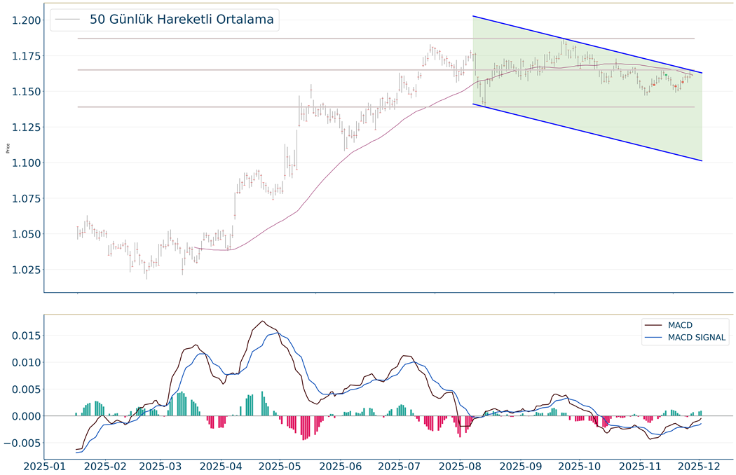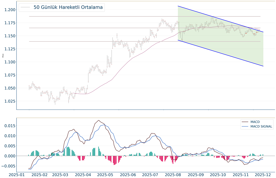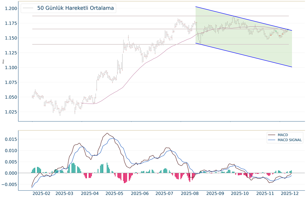 EUR/USD, günlük periyotta %0.0 düştü. Haftalık bakıldığında %0.799 yukarıda ve aylık bakıldığında ise %0.621 yukarıda seyrederken güncel olarak 1,16 seviyesinden işlem görmekte. Teknik göstergelere bakıldığında MACD çizgileri al konumunda, sıfır çizgisinin altında hareket ediyor. Ayrıca RSI değerine göre aşırı alım veya satım bölgesinde olmadığı gözleniyor. İşlem yaparken 1,184 ve 1,189 dirençleri ve 1,152 ve 1,136 destekleri izlenebilir.