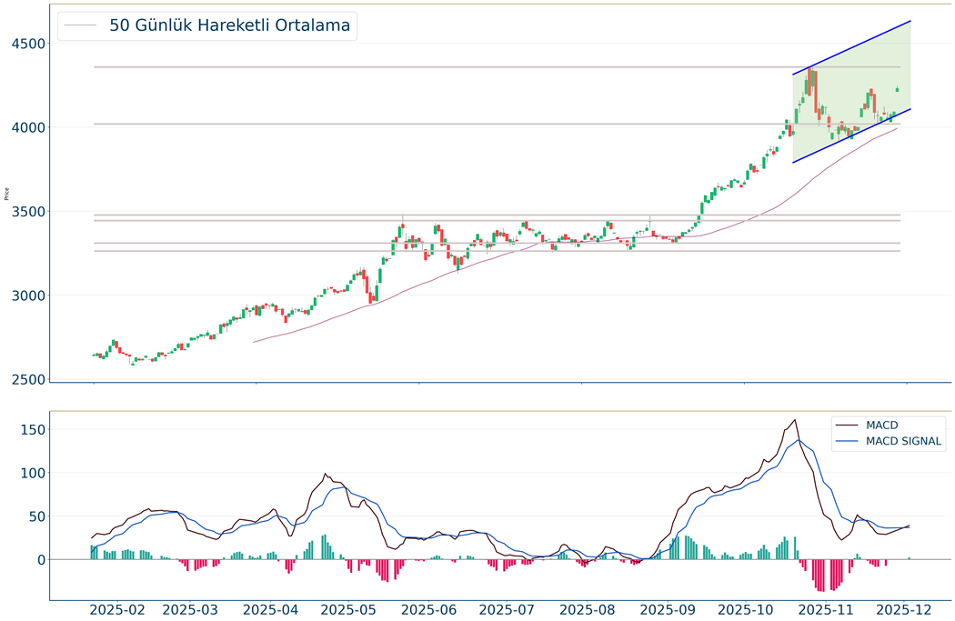Gün içi görülen en yüksek seviye 4.291 iken kapanış 4.274 seviyesinde %4.47 yükseliş ile gerçekleşti. Ortalama işlem hacimlerine bakıldığında ise 5 iş günü için gözlenirken 5 günlük hareketli ortalamanın üzerinde hareket etmesi kısa vadedeki olumlu görünüme işaret ediyor. Ayrıca, gün itibarıyla 4.221 seviyesi yeni destek görevi görürken kısa vadeli direnç 4.362 seviyesi oldu. Endeksin aşağı yönlü hareketini devam ettirmesi halinde 4.143 seviyesi ikinci destek görevi görürken yukarı yönlü hareketlerde ise 4.408 seviyesini ikinci direnç olarak izleyeceğiz.